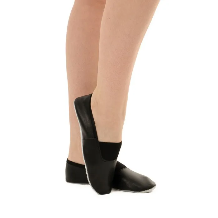 Чешки подходят для занятий танцами, гимнастикой и спортом. Подошва из натуральной кожи не скользит на гладком паркете и обеспечивает хорошее сцепление с площадкой. Широкая мягкая резинка крепко удерживает стопу, с ней чешки плотно сидят на ноге. Нейтральный цвет подойдёт любому костюму.