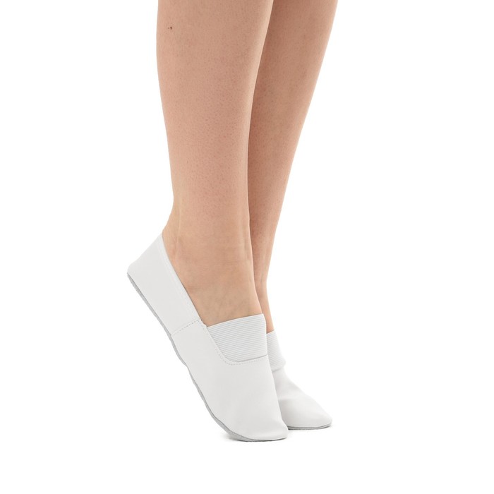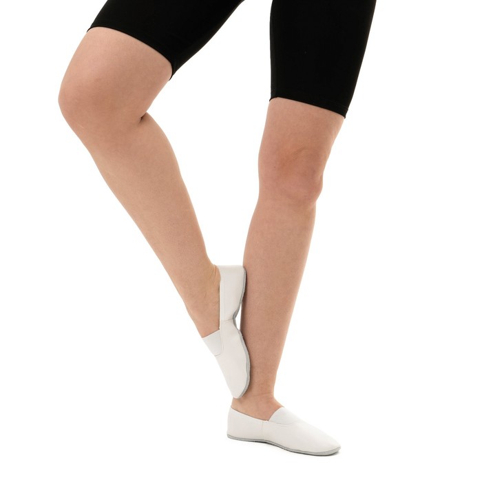 Чешки подходят для занятий танцами, гимнастикой и спортом. Подошва из натуральной кожи не скользит на гладком паркете и обеспечивает хорошее сцепление с площадкой. Широкая мягкая резинка крепко удерживает стопу, с ней чешки плотно сидят на ноге. Нейтральный цвет подойдёт любому костюму.