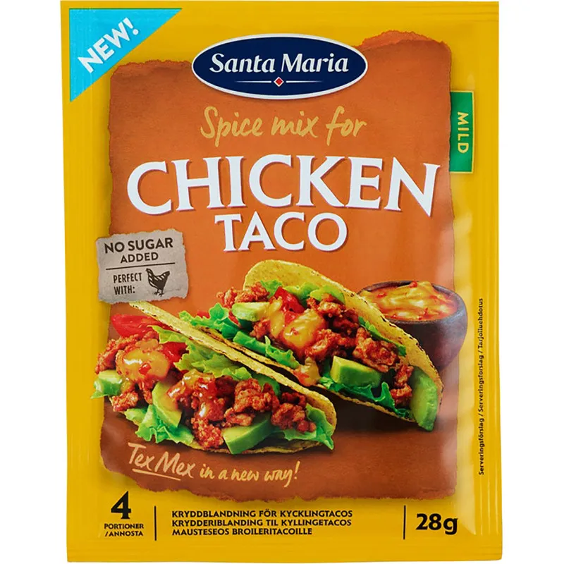 Смесь специй для такос с курицей - это превосходная TexMex приправа, идеально подходящая для курицы. В составе смеси вы найдете орегано, мягкий чили, чеснок и тмин. Просто добавьте смесь к 500 г куриного фарша или куриных филе и наслаждайтесь богатым вкусом. Упаковка 28 г. Мы постоянно обновляем информацию о продукте, но рекомендуем всегда проверять данные на упаковке.