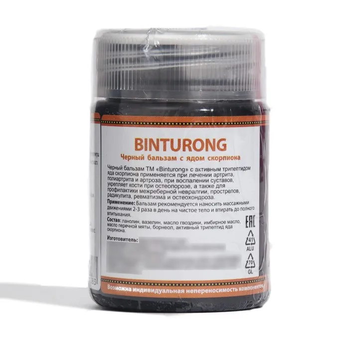 Состав: ланолин, вазелин, масло гвоздики, имбирное масло, масло перечной мяты, борнеол, активный трипептид яда скорпиона.