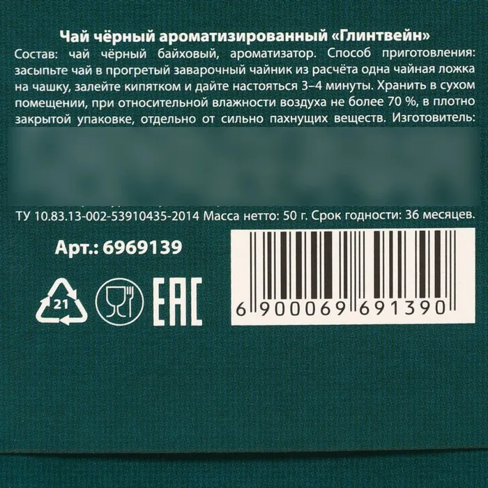 Чёрный чай «Сладкого Нового Года», вкус: глинтвейн, 50 г. — Характеристики