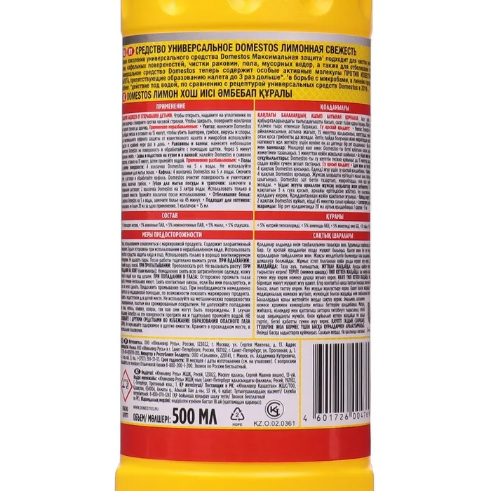 Лимонная свежесть помогает обеспечивать в доме блестящую чистоту и защиту от микробов надолго. Доместос — это густое и экономичное средство, которое имеет гелевую текстуру и помогает устранять неприятные запахи, бактерии, грибки, вирусы и споры во всем доме. Чистящий гель для уборки универсальный можно купить и использовать для уборки и очищения туалета, ванны, раковины, плитки, рабочих поверхностей на кухне и полов.