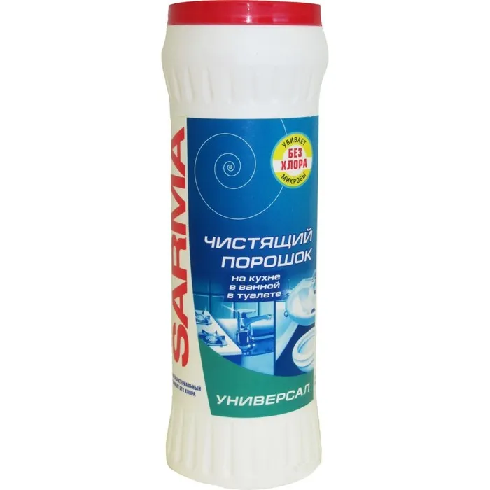 Чистящее средство порошок, универсальное, прекрасно очищает эмаль, кафель и керамику, метласхой плитки не повреждая их структуру. Справится с самыми стойкими загрязнениями. Экономичен в употреблении.