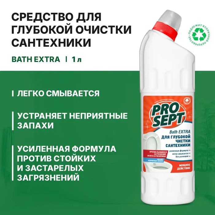 Средство для глубокой чистки сантехники Prosept – подходит для генеральной уборки санитарных комнат. Быстро и эффективно устраняет водный и мочевой камень, ржавчину, известковые налеты и грязесолевые отложения. Освежает поверхность, устраняя неприятные запахи. Легко смывается, не оставляя разводов. Гель подходит для керамических, фаянсовых, полимерных, стеклянных и других поверхностей.