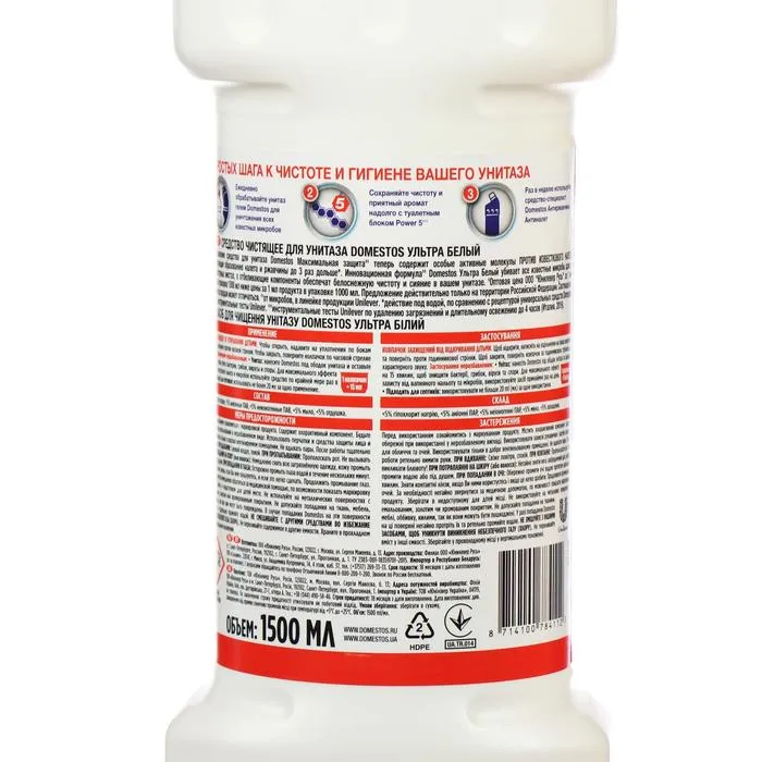 Чистящее средство для туалета и ванной поможет обеспечить чистоту и гигиену унитаза, устранение неприятных запахов, удаление плесени и мыльного осадка, антимикробную обработку малых поверхностей и предотвращение появления известкового налета. Многофункциональный гель может применяться для очищения ванны, стоков и сливов, мытья различных поверхностей (пол, кафель, детские игрушки) и даже для отбеливания белья. Доместос гель для унитаза оснащен удобным семиструйным дозатором, который помогает равномерно и экономно наносить средство на нужную поверхность. Преимущества средства: