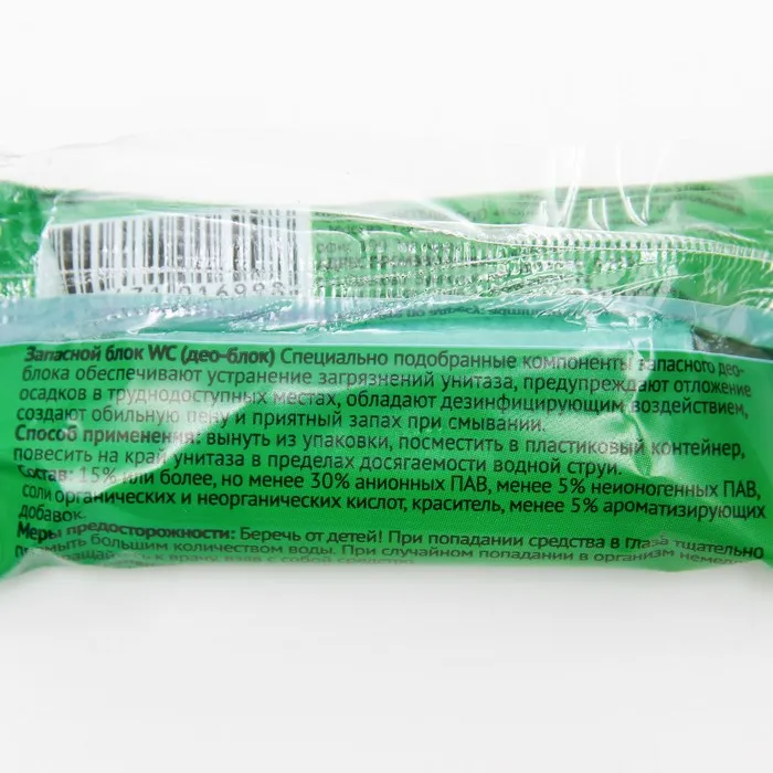 Специально подобранные компоненты запасного део-блока обеспечивают устранение загрязнений унитаза, предупреждают отложение осадков в труднодоступных местах, обладают дезинфицирующим воздействием, создают обильную пену и приятный запах при смывании.