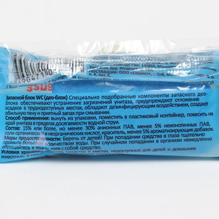 Специально подобранные компоненты запасного део-блока обеспечивают устранение загрязнений унитаза, предупреждают отложение осадков в труднодоступных местах, обладают дезинфицирующим воздействием, создают обильную пену и приятный запах при смывании.