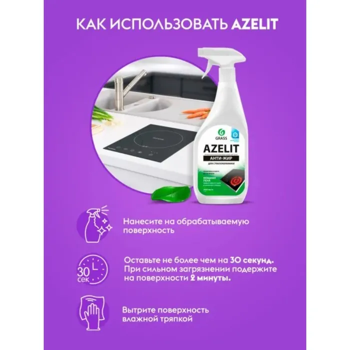 Специализированное средство для очистки стеклокерамических, индукционных и керамических плит. Спрей удаляет жир, придает блеск и защищает от повторного загрязнения. В состав включены компоненты, обеспечивающие быстрое удаление сложных загрязнений, таких как пригоревшие остатки пищи. Средство равномерно распределяется по варочной панели и легко смывается без разводов, чтобы повысить эффективность ухода, рекомендуется оставить на обрабатываемом участке на несколько минут, а затем удалить посредством губки или мягкой тканевой салфетки без ворса.