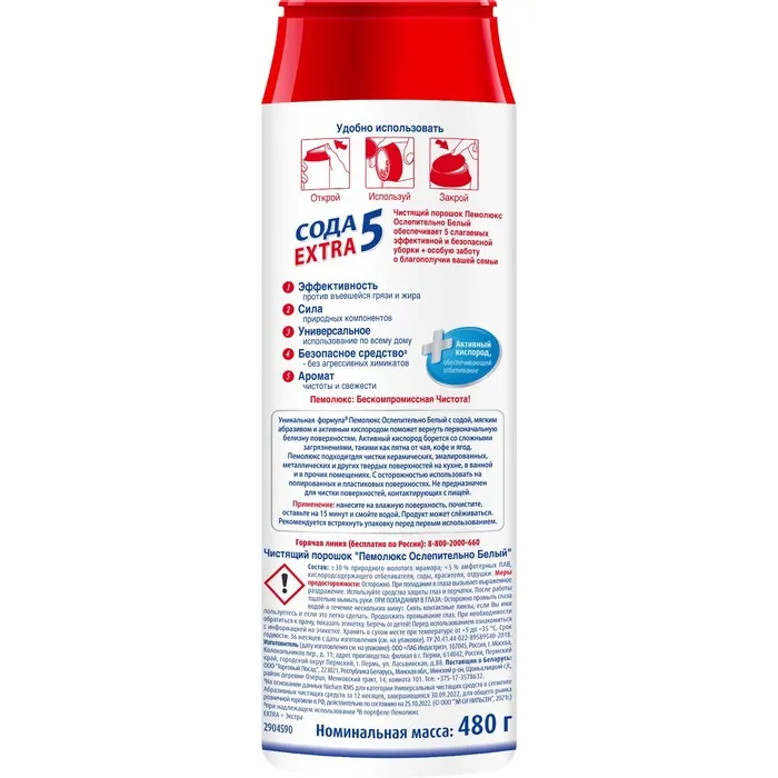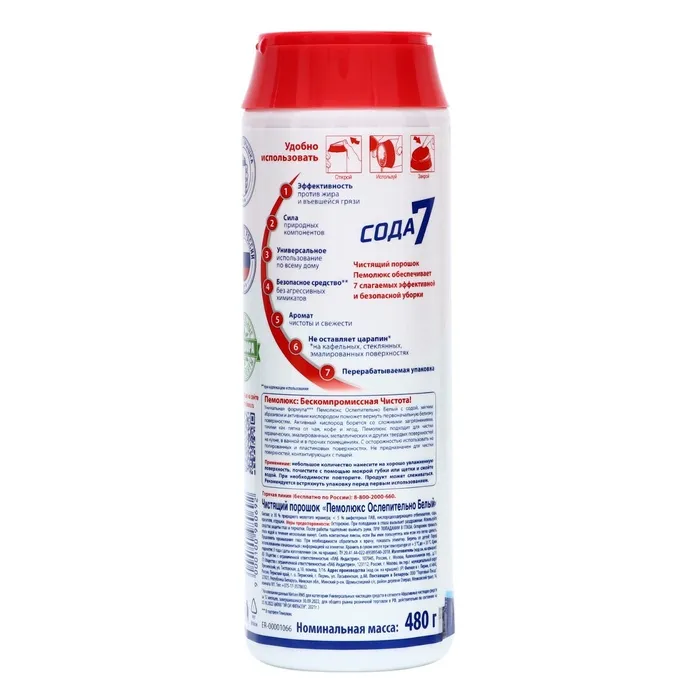 Чистящее средство Пемолюкс порошок "Ослепительный белый" , 480г — Характеристики