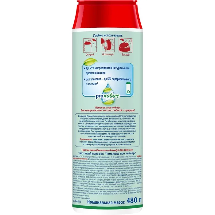 Средство Пемолюкс Pro Nature - эффективный чистящий порошок, который заботится не только о чистоте дома, но и об экологии.