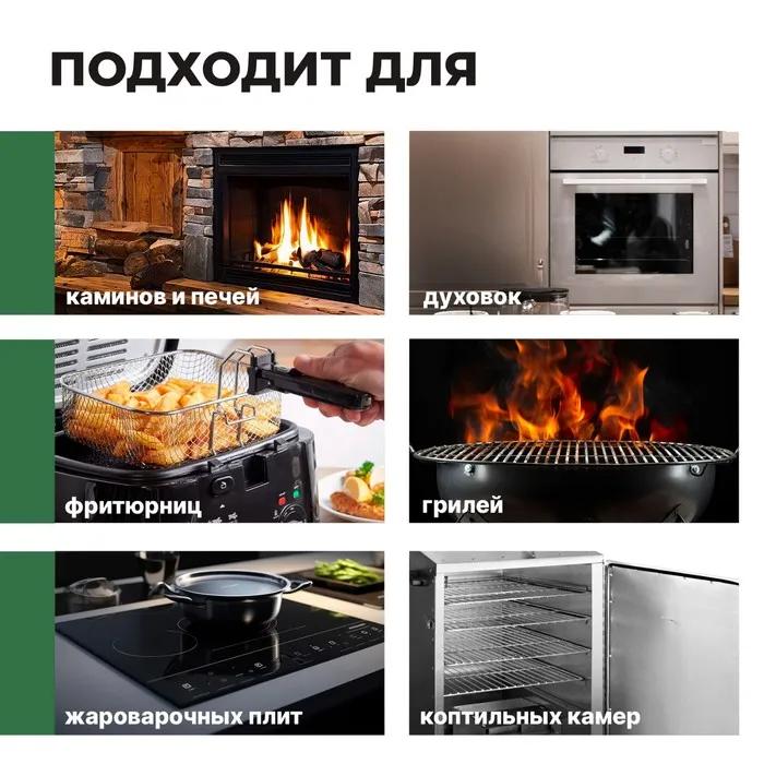 Подходит для чистки коптильных камер, фритюрниц, грилей и жароварочных плит. Удаляет сильные загрязнения: копоть, слои сажи и нагара, смолы и засохшего жира, никотиновый налет. Не оставляет разводов, образует защитную пленку, способствующую сохранению чистоты поверхности.