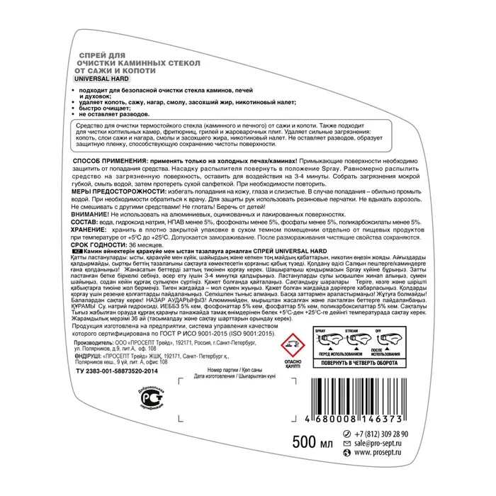 Средство для очистки термостойкого стекла (каминного и печного) от сажи и копоти.