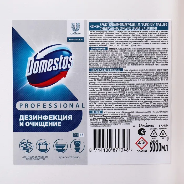 Это универсальное чистящее средство DOMESTOS PROFESSIONAL станет надежным помощником в поддержании чистоты и гигиеничности вашего дома или рабочего пространства, при этом обеспечивая приятный аромат свежести атлантического бриза.