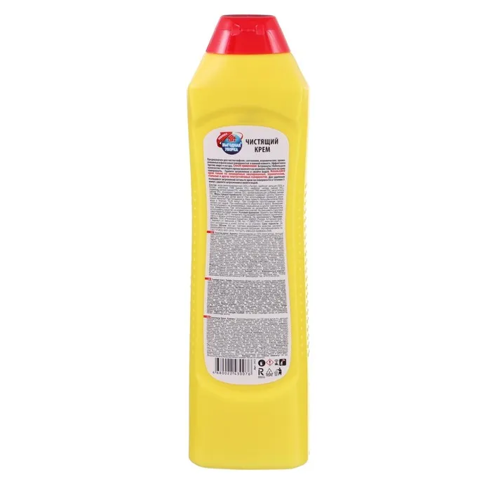 Способ применения: встряхните. Нанесите крем на губку или на саму поверхность. Равномерно распределите по поверхности, удалите загрязнение и смойте водой. Для удаления въевшихся загрязнений выдержать крем на поверхности 15-20 минут.