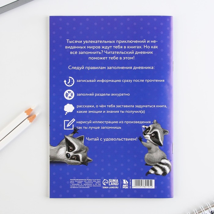 Читательский дневник «Енотик», мягкая обложка, формат А5, 24 листа. — Характеристики
