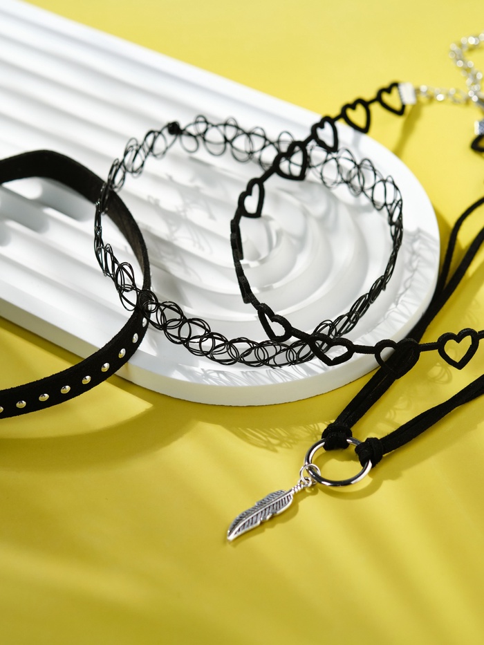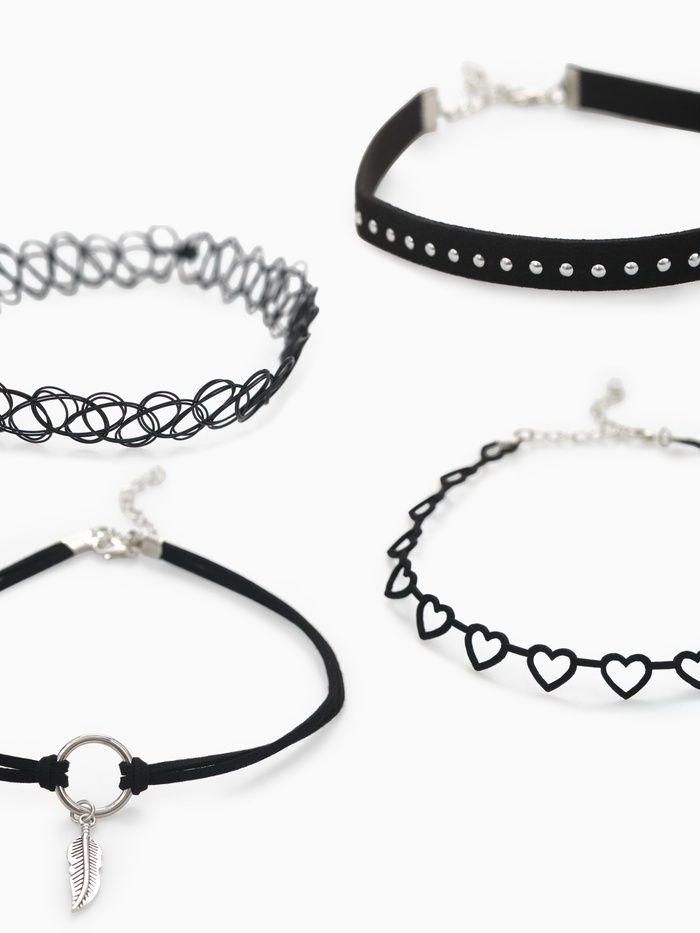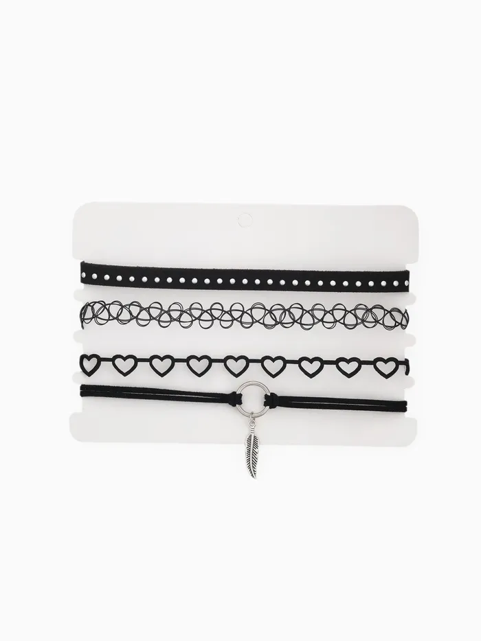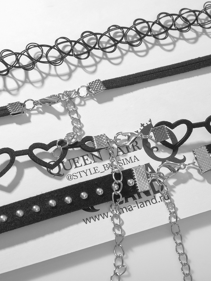 Чокер «Ассорти» романтика, (набор 4 шт.), цвет чёрно-серебряный, 30,5 см — Характеристики