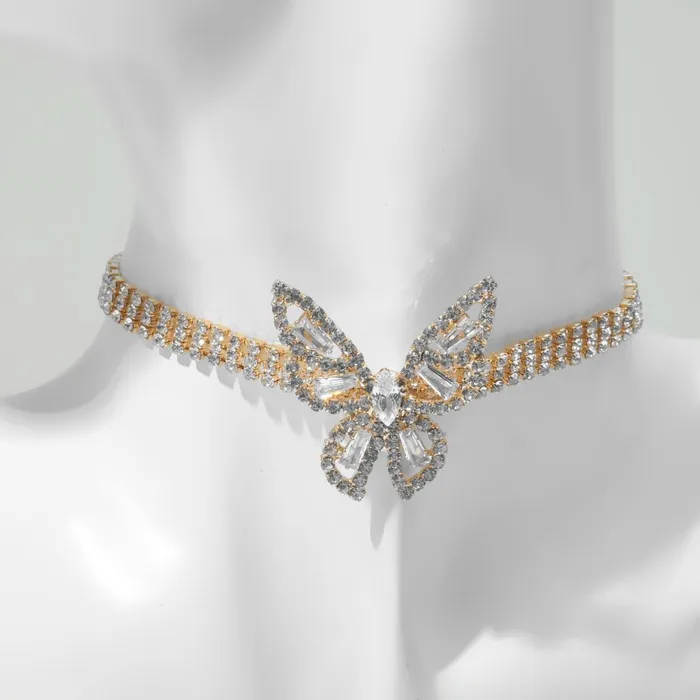 Чокер «Бабочка» крупная, цвет белый в золоте, 30 см — Характеристики