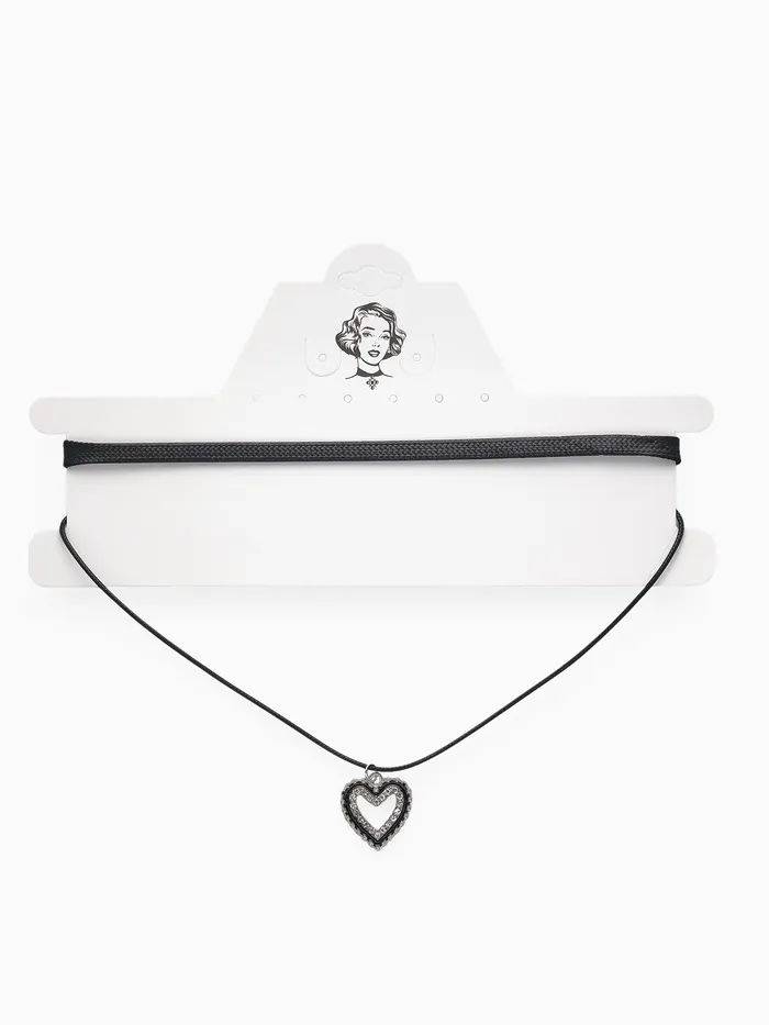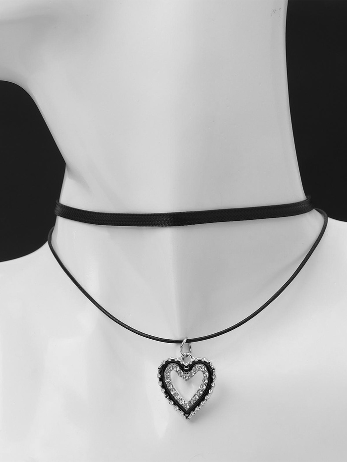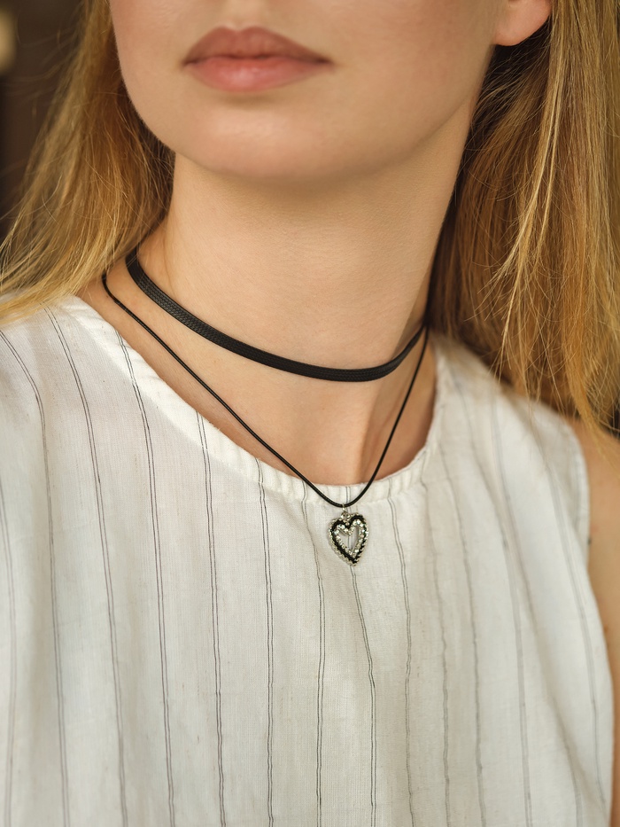 Чокер «Двойной» с нитью, сердечко, цвет бело-чёрный в серебре, L=32 см — Характеристики