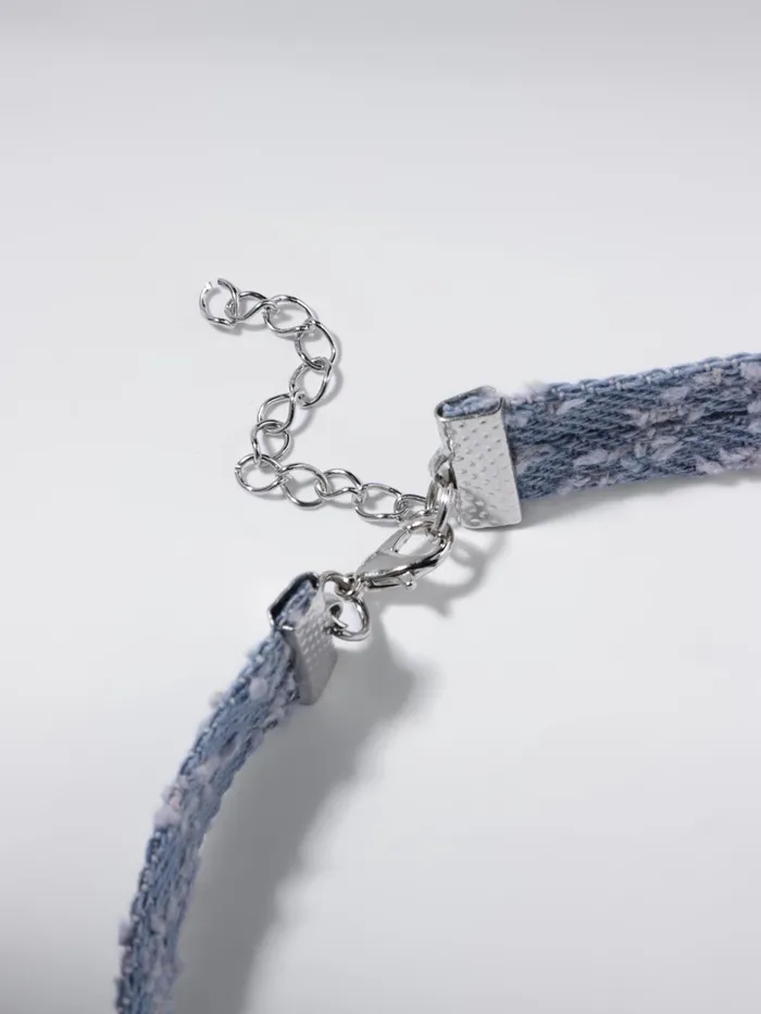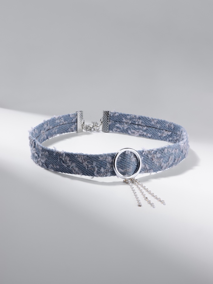 Голубой текстильный чокер с кольцом и серебристыми цепочками — стильный аксессуар для женщин, который добавляет лёгкую дерзость и современный акцент в образ. Длина 36 см обеспечивает посадку близко к шее, подчёркивая её линию и создавая эффектный силуэт.