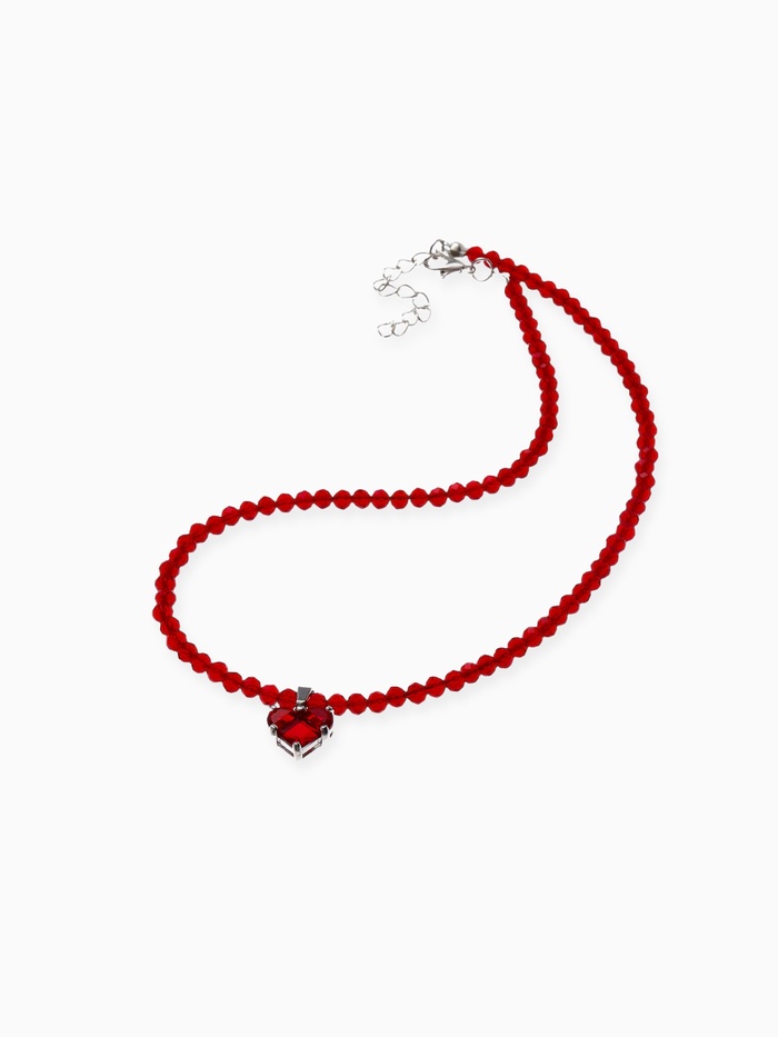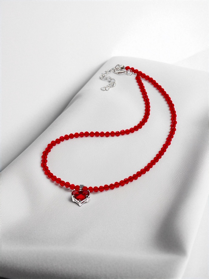 Чокер из бисера «Хрусталь» сердце, красный в серебре, 36 см + 5 см доп, цепочка — Характеристики