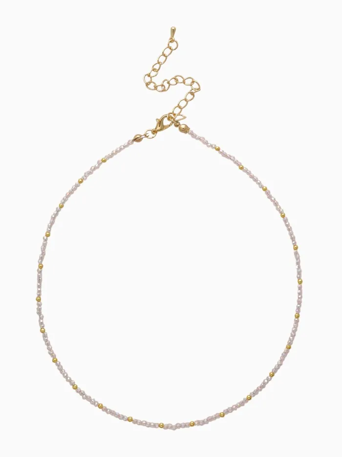 Стеклянные вставки создают мягкое сияние, имитируя хрустальную игру света, что придаёт аксессуару особую глубину и утончённость. Основа из прозрачной лески делает украшение практически невидимым, создавая эффект «парящего» чокера, который идеально впишется в любой образ — от повседневного до праздничного.