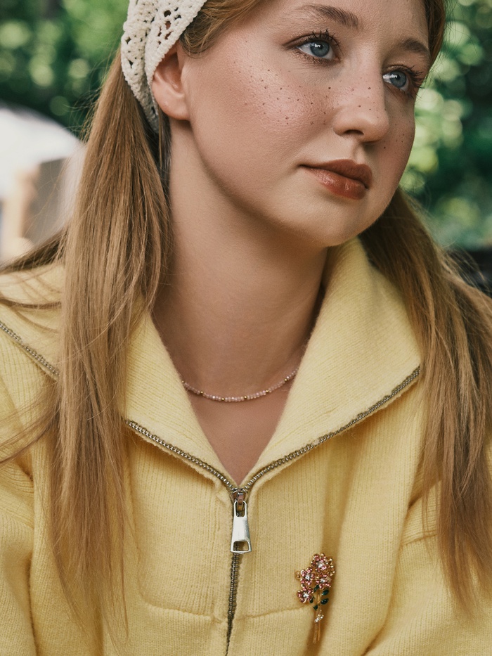 Чокер с нежными светло-розовыми бусинами на леске и золотистой фурнитурой — воплощение лёгкости и изящества в современном украшении. Общая длина 37 см с дополнительной цепочкой 5 см позволяет точно подобрать посадку, обеспечивая комфорт и подчёркивая естественную красоту шеи.