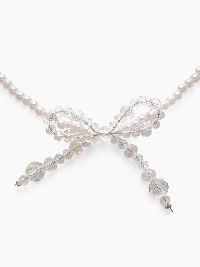 Чокер «Хрустальный бантик», жемчужные бусины, белый в серебре, 33 см + 5 см доп, цепочка — Характеристики