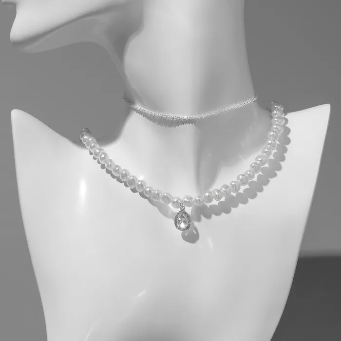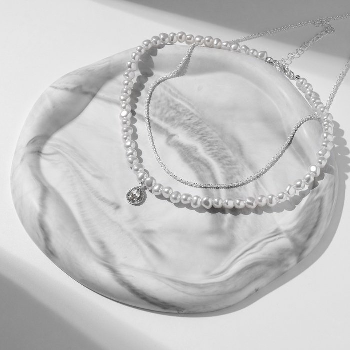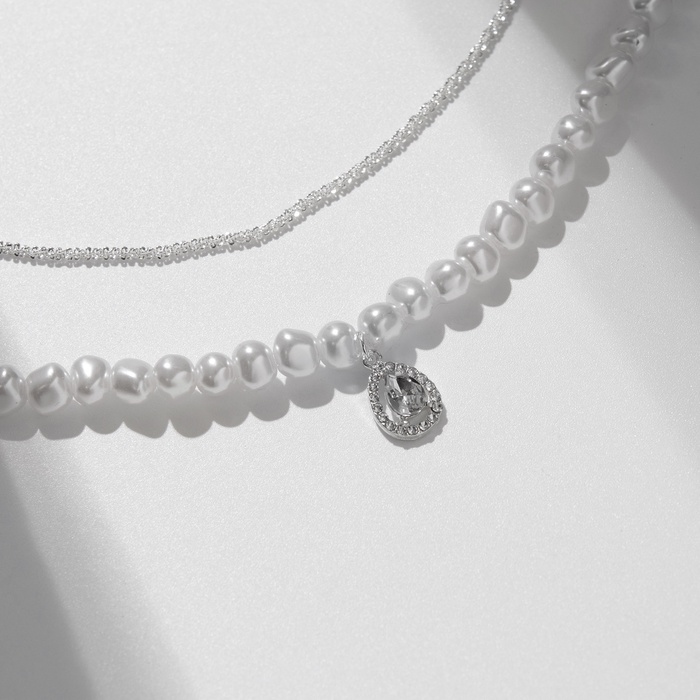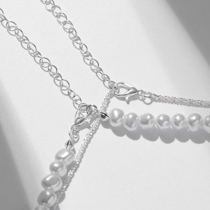 Чокер-колье многослойный «Бусина» жемчужное, цвет белый в серебре — Характеристики
