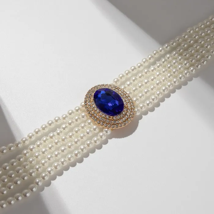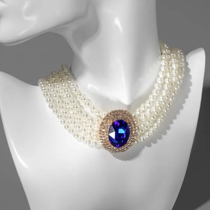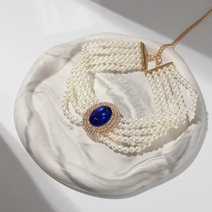 Чокер-колье «Роскошь» жемчужое, синий в золоте, 30,5 см — Характеристики