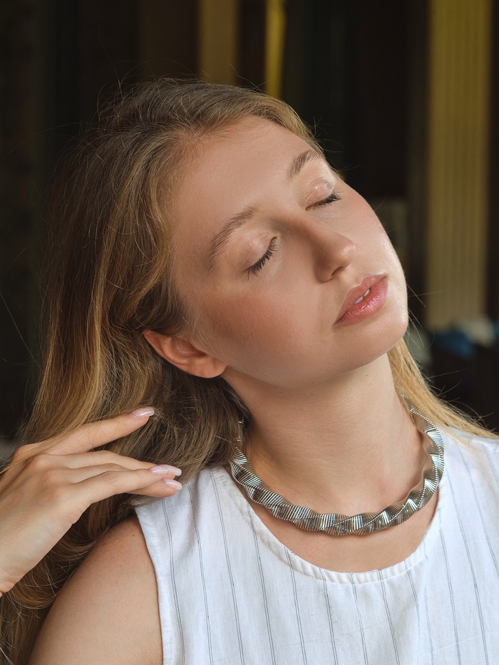 Этот серебристый чокер станет стильным дополнением к вашему гардеробу, подчеркнёт индивидуальность и добавит современную нотку элегантности в любой образ — от повседневного до вечернего.