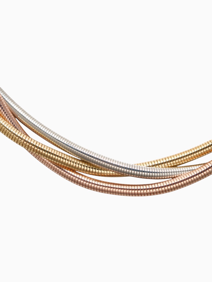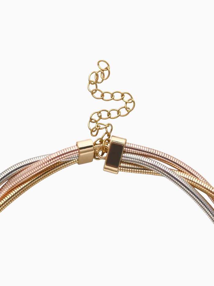 Многослойный чокер в сочетании золотистых и серебристых оттенков представляет собой гармоничное воплощение минимализма и современного стиля. Его d=15 см идеально подчёркивает линию шеи, создавая эффектный, но при этом сдержанный акцент в образе.