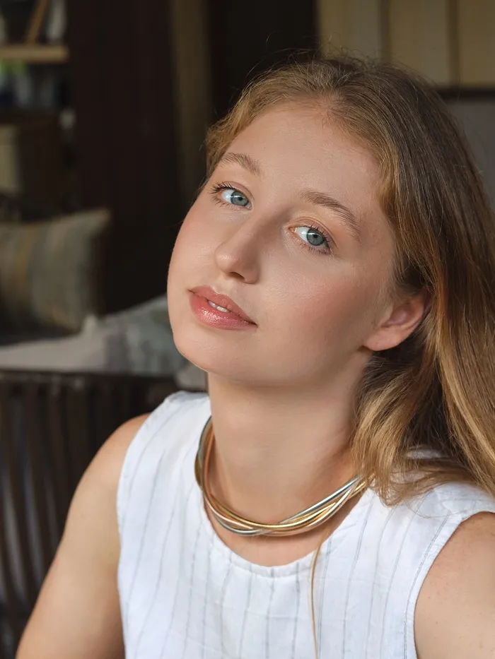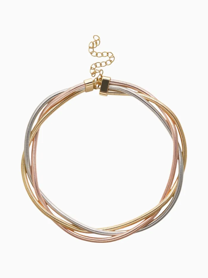 Многослойный чокер в сочетании золотистых и серебристых оттенков представляет собой гармоничное воплощение минимализма и современного стиля. Его d=15 см идеально подчёркивает линию шеи, создавая эффектный, но при этом сдержанный акцент в образе.