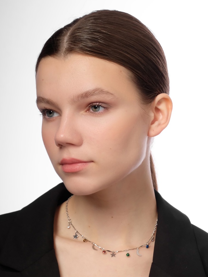 Чокер «Полумесяц» фазы луны, цветной в серебре, 35 см — Характеристики