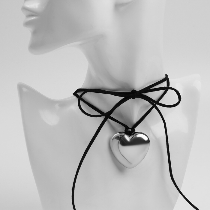 Чокер «Сердце» крупное, металлик, чёрный в серебре, 60 см — Характеристики