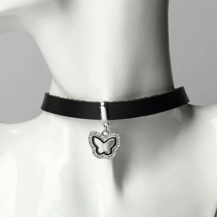 Погрузитесь в мир элегантности и утончённости с чокером, который станет ярким акцентом вашего образа. Этот стильный аксессуар длиной 39,5 см выполнен из искусственной кожи и украшен изящной подвеской в виде бабочки, что придаёт ему уникальный и запоминающийся вид.