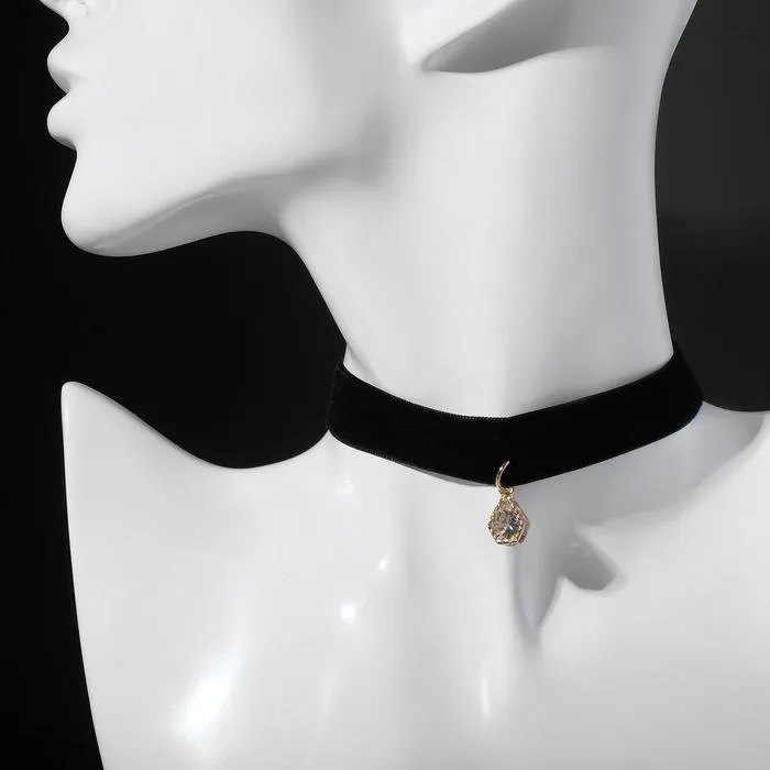 Чокер длиной 37 см на текстильной основе чёрного цвета с одной нитью — это изысканное украшение с каплевидной вставкой из искусственного белого фианита в огранке на фоне золотистой металлической фурнитуры. Такое сочетание придаёт образу лёгкость и благородный блеск, позволяя подчеркнуть индивидуальность и утончённый вкус.