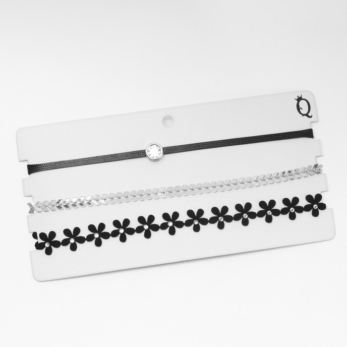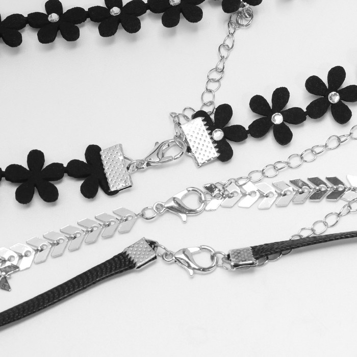 Чокер «Трио» цветок и стрелы (набор 3 шт.), цвет чёрно-серебряный, 38 см — Характеристики