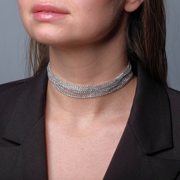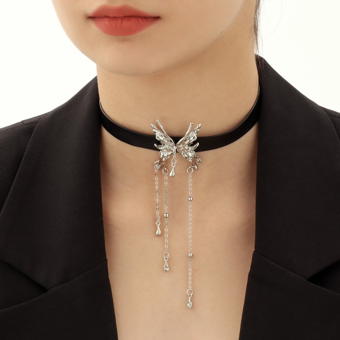 Этот чокер сочетает в себе жёсткость металла и нежность текстиля, создавая баланс между современностью и романтичностью. Он легко впишется в повседневный гардероб и дополнит праздничный образ, подчёркивая характер и вкус.