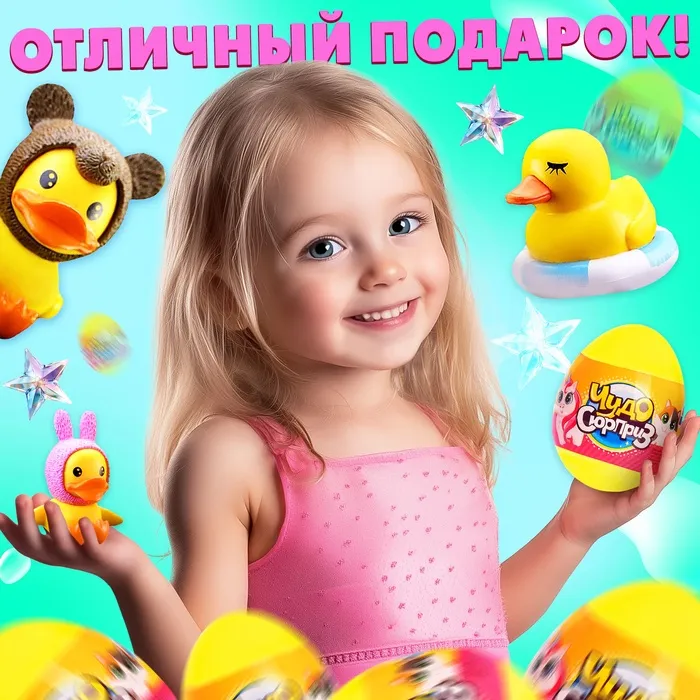 Чудо-сюрприз «Утята» — это увлекательное приключение для маленьких исследователей. Яркое яйцо скрывает в себе миниатюрную фигурку утёнка и набор ярких наклеек.