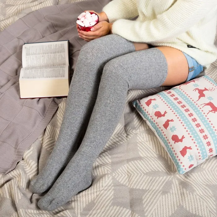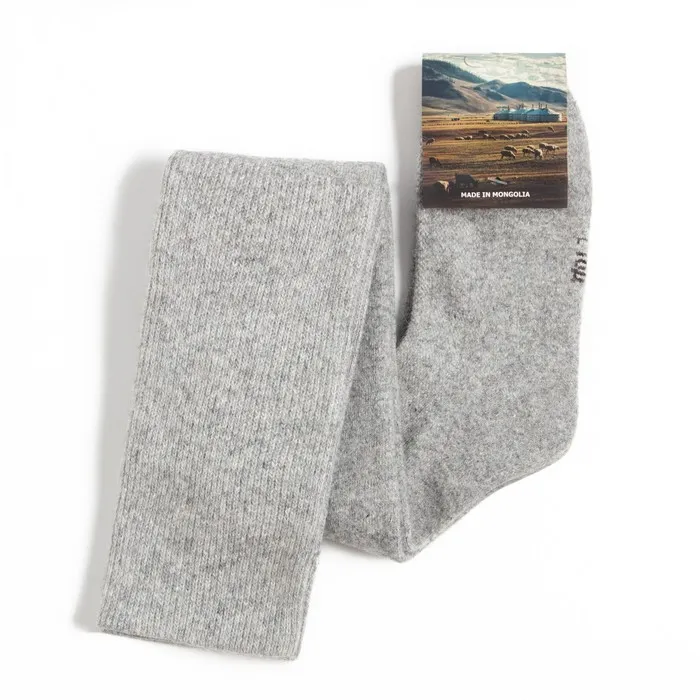 Чулки женские из монгольской шерсти без рисунка, серые, размер 23-25
