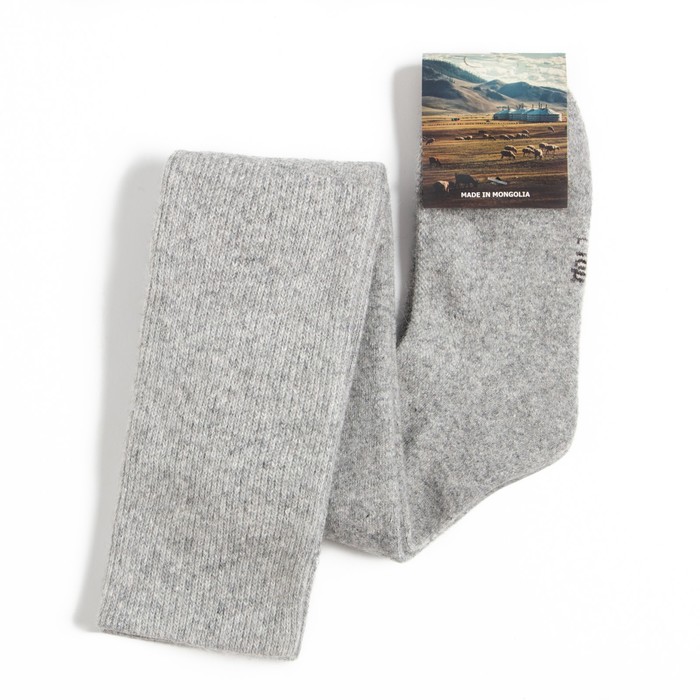 Чулки женские из монгольской шерсти с рисунком, цвет серый, размер 23-25