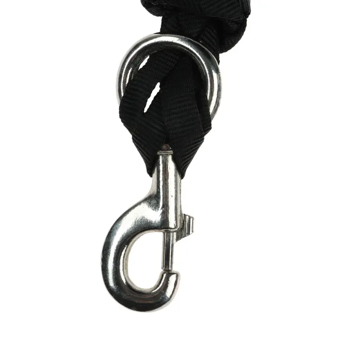 Чомбур оснащен карабином для быстрой и безопасной фиксации лошади.