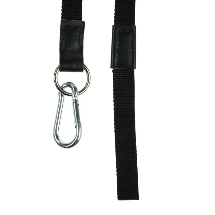 Чомбур оснащен карабином для быстрой и безопасной фиксации лошади.