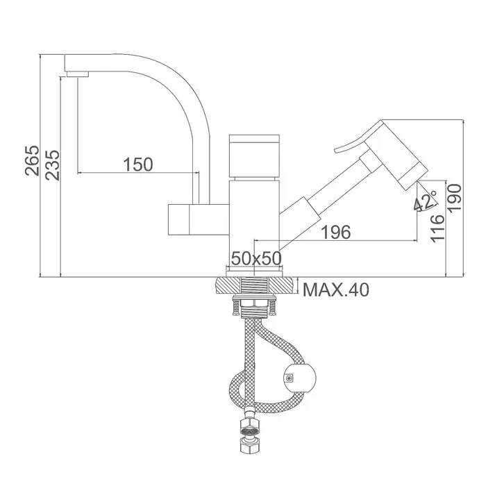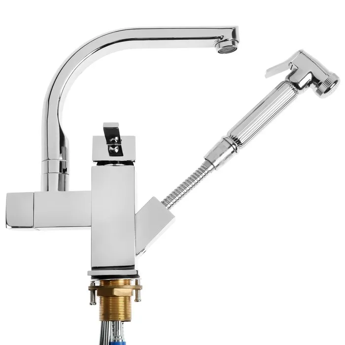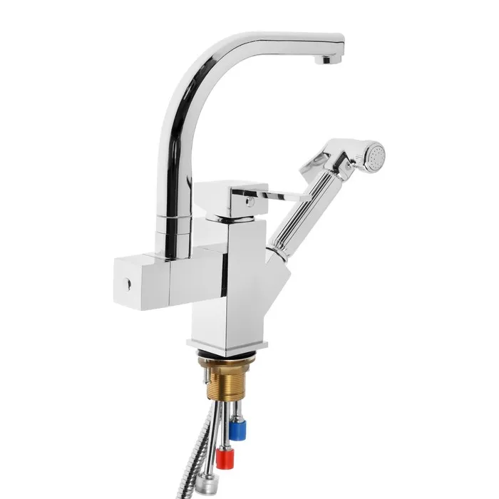 Смеситель для кухни Accoona выполнен с одним рычагом и гигиеническим душем. Он оснащен аэратором для снижения уровня шума и экономного расхода воды.