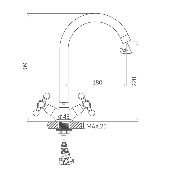 Смеситель для кухни Accoona выполнен с двумя рычагами и отлично дополнит существующую сантехнику. Он оснащен аэратором для снижения уровня шума и экономного расхода воды.