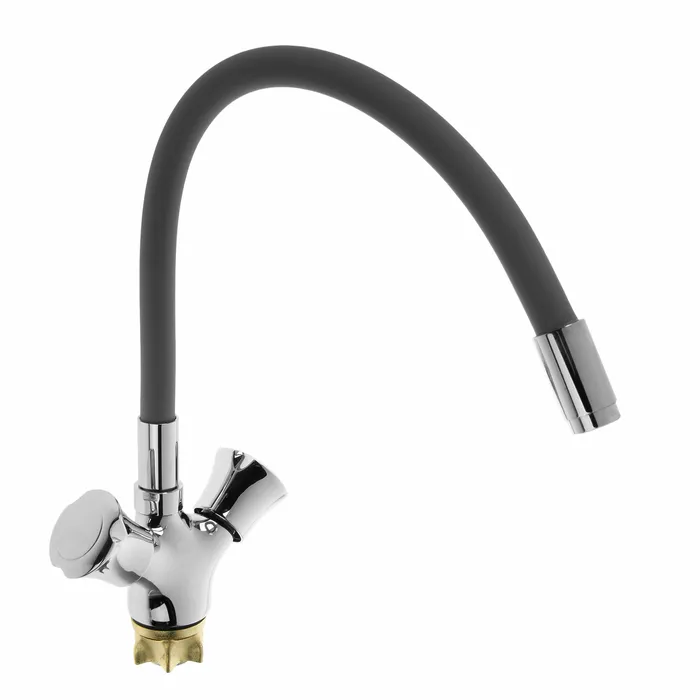 Смеситель для кухни Accoona выполнен с двумя рычагами и отлично дополнит существующую сантехнику. Он оснащен аэратором для снижения уровня шума и экономного расхода воды.