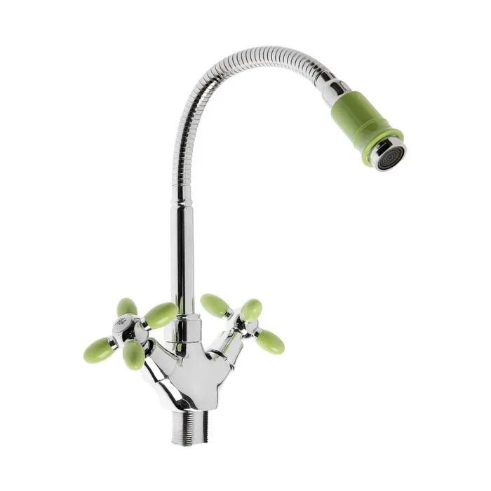 Cмеситель для кухни "Эверест" B58-071E, двухвентильный, высокий излив, на гайке,хром/зеленый — Характеристики