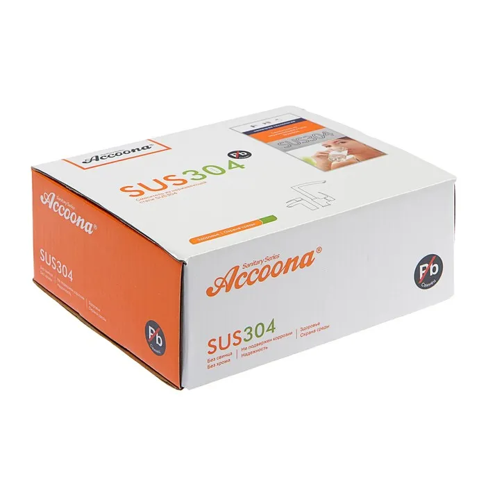 Cмеситель для раковины Accoona A9690, однорычажный, с гайкой, нержавеющая сталь — Характеристики