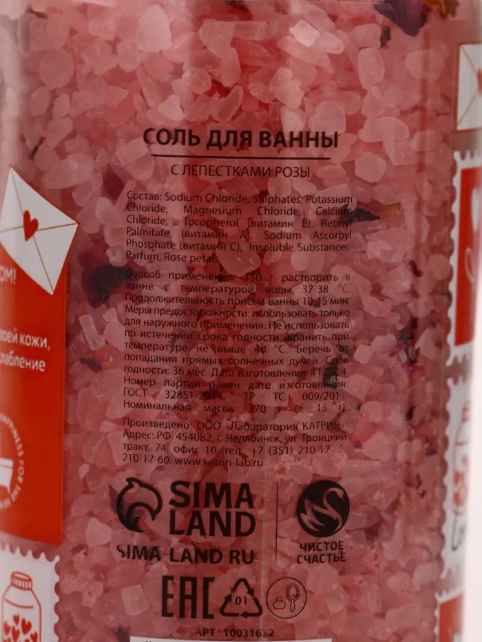 Cоль для ванны с лепестками роз «Любовь - это...», 370 г, Чистое счастье — Характеристики