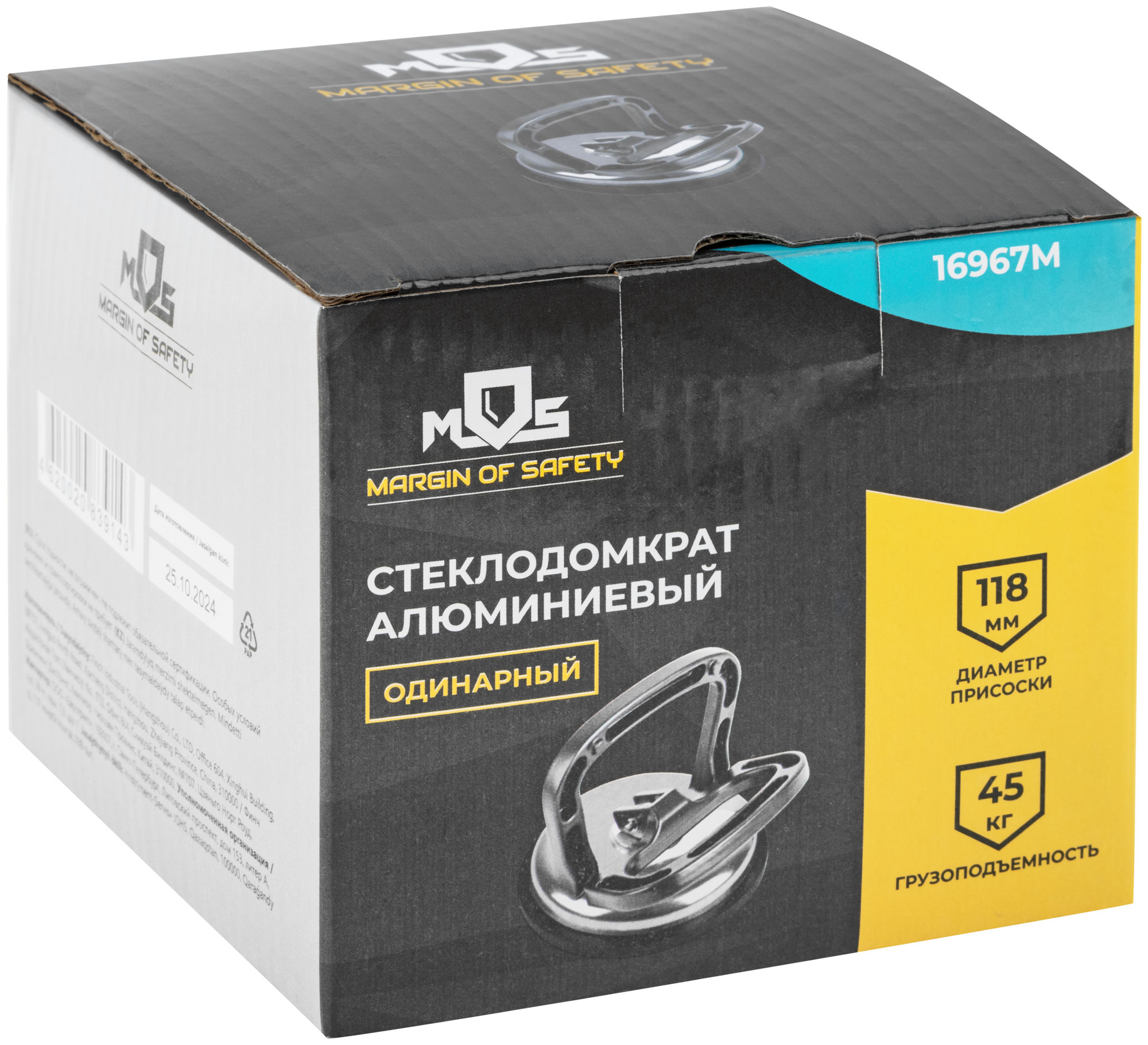 Корпус стеклодомкрата изготовлен из прочного алюминия, что обеспечивает долговечность и легкость изделия. Резиновая подошва гарантирует надежную вакуумную фиксацию, позволяя работать с грузами до 45 кг.
